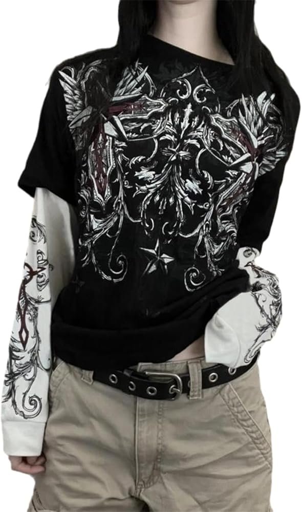 Women’s Gothic Fake Two Piece Shirt Y2K